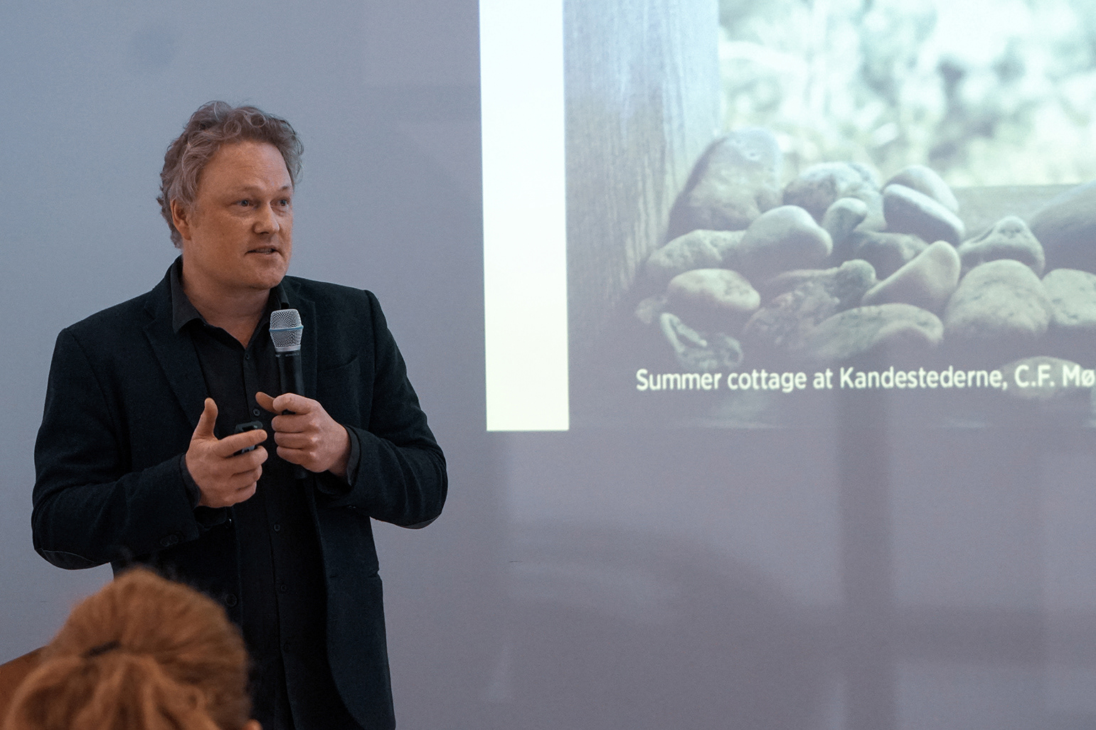 Event photography capturing a design, culture, and architecture presentation evening at HKS Architects. The event, in collaboration with Domus, Republic of Fritz Hansen, and Hørning, featured five speakers exploring the influence of hygge and Danish aesthetics on food, design, and architecture.